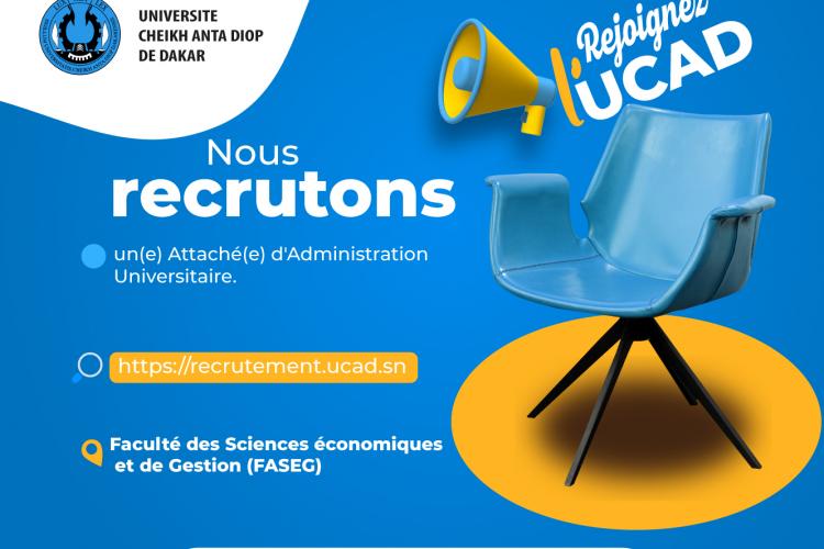 Le Recteur de l'Université Cheikh Anta Diop de Dakar recrute pour le compte de la Faculté des Sciences économiques et de Gestion (FASEG), un(e) Attaché(e) d'Administration Universitaire.